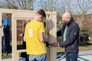 Klaas Anne Luimstra is uitvoerder bij VDM Woningen en begeleidt de leerlingen tijdens de praktijkopdracht. ‘’Het is mooi om het enthousiasme bij de leerlingen te zien. Vanaf tekeningen bouwen zij de demowoning op, daarmee betrekken we ze bij ontwerpen, plannen en uitvoeren van de bouw. Prefab bouwen met houtskeletbouw wordt steeds belangrijker in de bouwsector en wij vinden het belangrijk dat leerlingen op tijd kennis maken met deze bouwmethode.’’